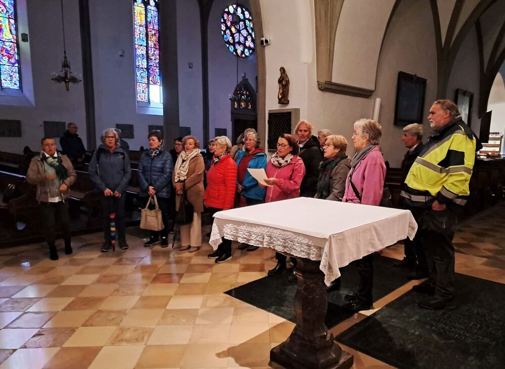 Den Abschluss bildete eine kurze Führung im Dom St. Nikolaus. Vor dem Marienaltar im Seitenschiff ließen wir das Lied „Ave Maria“ von Arcadelt erklingen, das unsere Bitten und unseren Dank für diesen gemeinsamen Ausflugstag ausdrücken sollte.