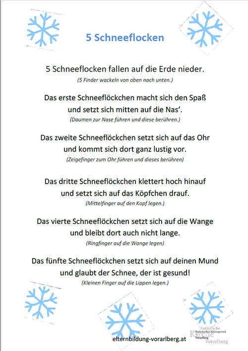 Fingerspiel - 5 Schneeflocken A4