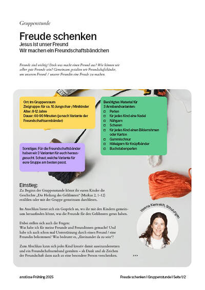 Freunde sind wichtig! Doch was macht einen Freund aus? Wie können wir selber gute Freunde sein? Gemeinsam gestalten wir Freundschaftsbänder, um unserem Freund / unserer Freundin eine Freude zu machen.